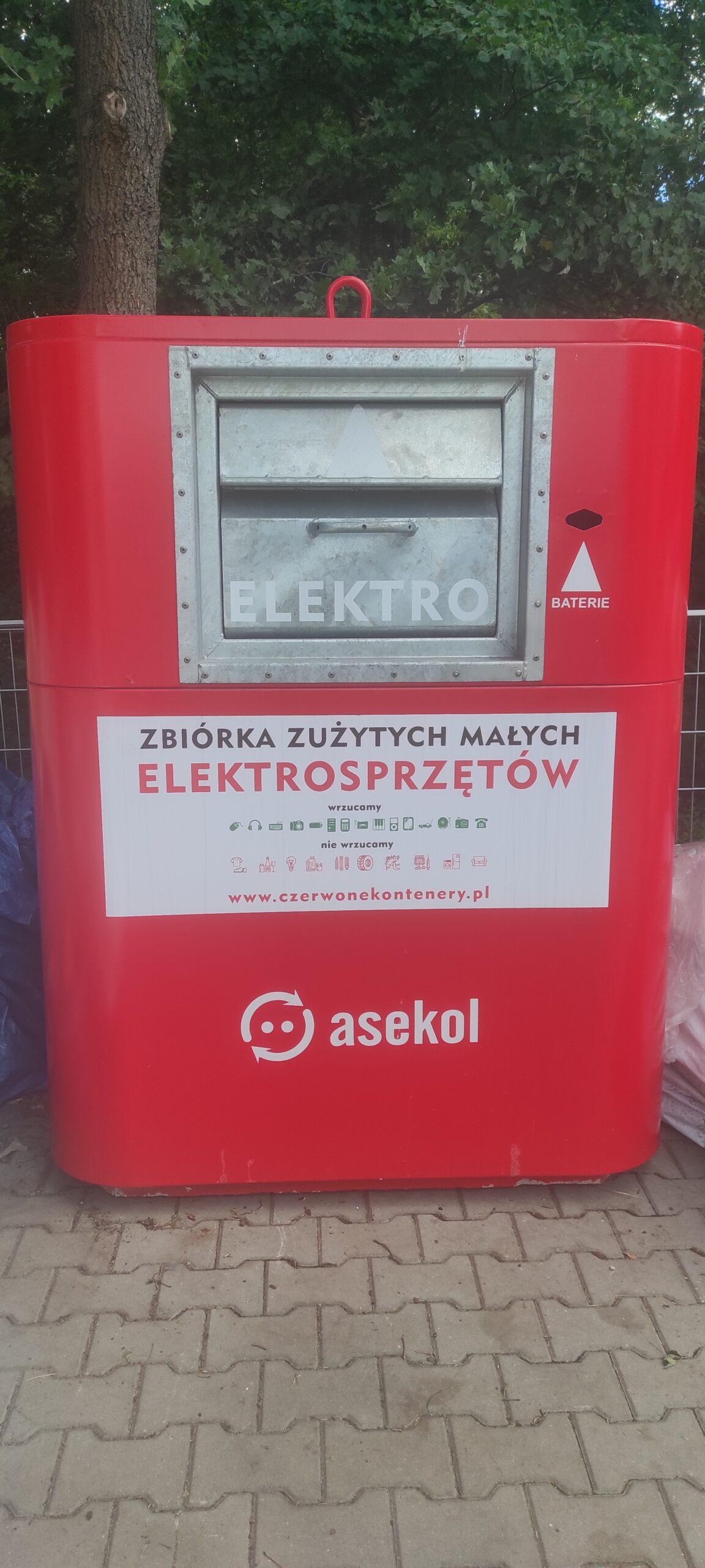 Do Państwa dyspozycji, na terenie Nieruchomości został podstawiony czerwony kontener na zużyty sprzęt elektryczny i elektroniczny.